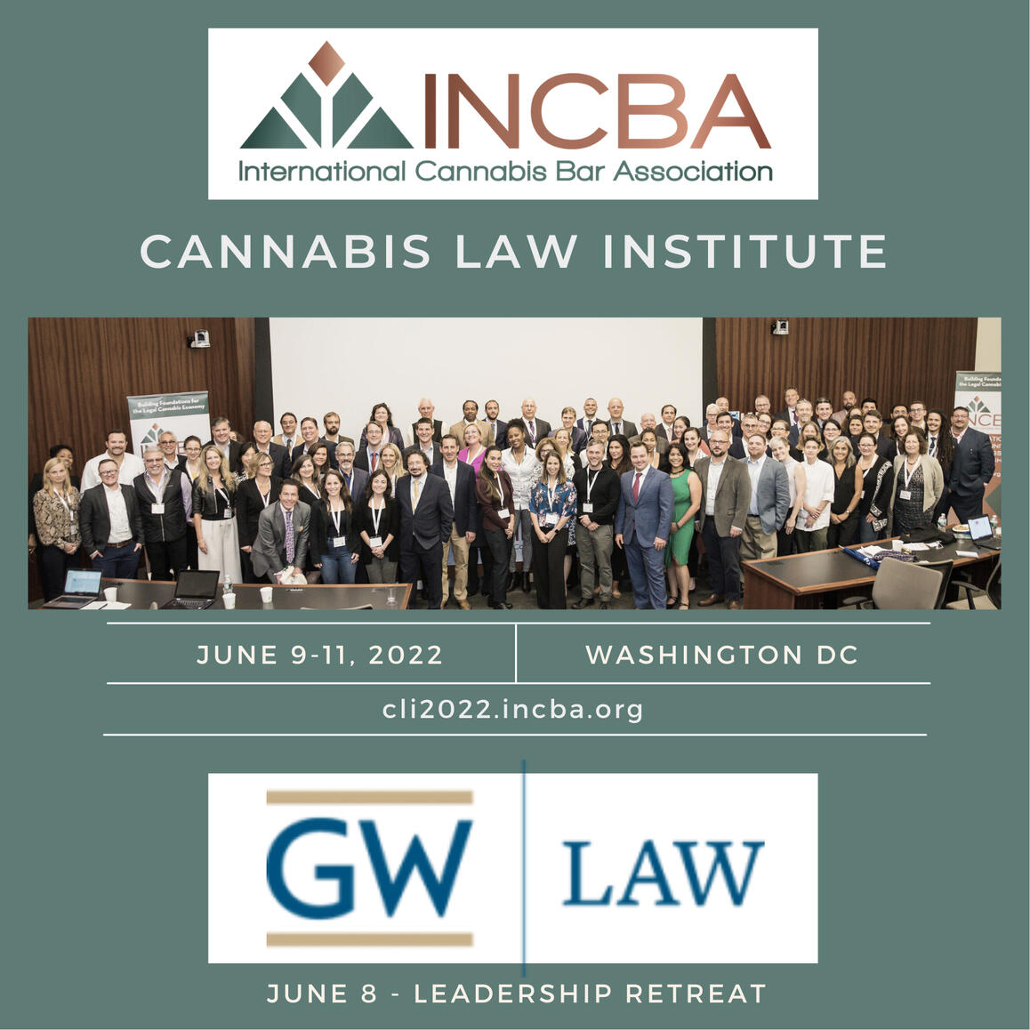 Each year, International Cannabis Bar Association hosts the Cannabis law Institutesm, where the leading minds in law convene for a multi-day, immersive educational and networking event. Offering CLE credit in the United States and select other jurisdictions, CLI covers a multitude of topics in educational sessions interspersed with networking luncheons, off-site events, receptions, and committee and leadership meetings to inform your legal practice.In its fifth year, INCBA's CLI has emerged at the do-not-miss event legal event of the year, where relationships are formed and key insights are provided. Each year, INCBA holds its annual event at a law school around the continental US. We search for a location that can support our growing numbers, but provide the intimate setting and academic influence that makes our members and attendees strive for legal excellence. We were so thrilled to return to GW Law for just these reasons.